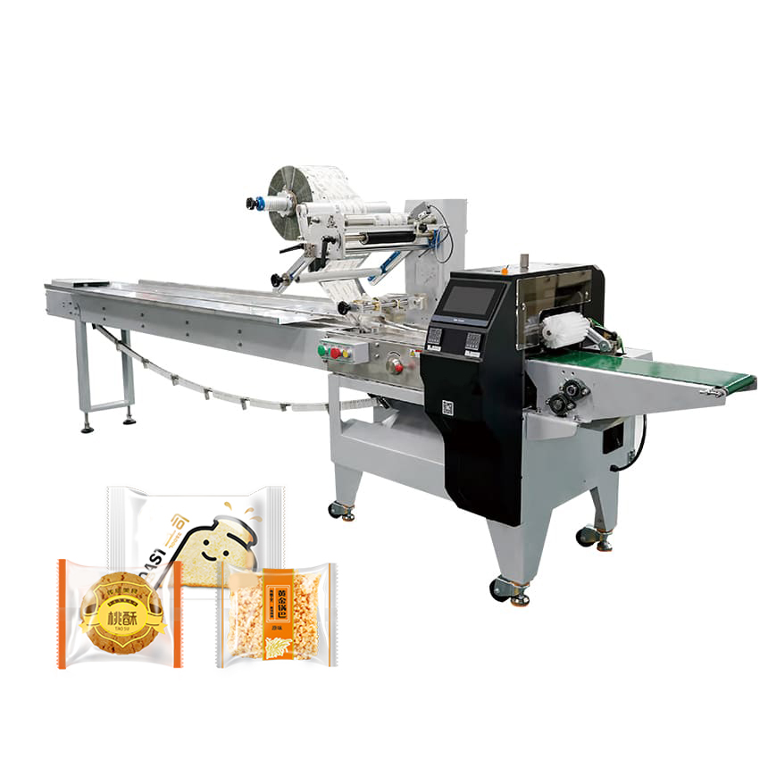 MC-180 Horizontal packaging machine for pouch packing of food, candy, medicine, and more – suitable for baking food (moon cake, bread, biscuits), medical equipment, daily necessities, hardware parts, paper boxes, and trays – discover competitive packing machine prices and packaging equipment solutions.