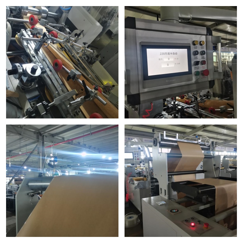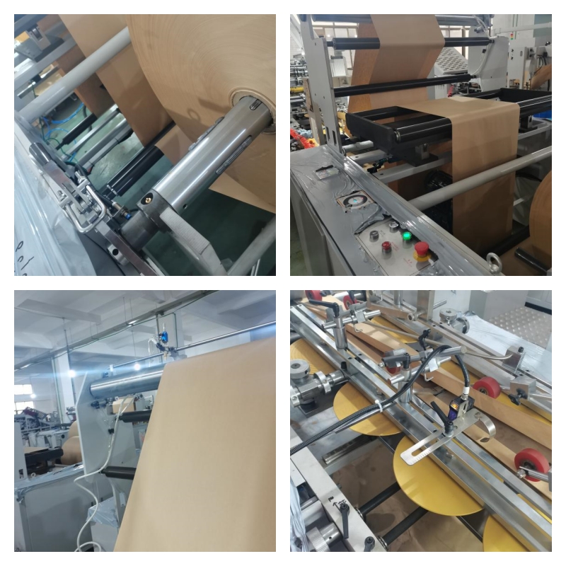 This machine can complete the paper bag production process for roll-type original color paper or printing roll-type paper such as kraft paper, food paper, etc. in one go. It features automatic middle sealing, raw material rolling, fixed-length cutting, bottom embossing, bottom folding, bottom gluing, and bag bottom shaping. The finished bags can be processed all at once. This machine is more convenient to operate, more efficient, and more stable. It is a machine equipment for producing various types of paper bags, such as eco-friendly paper bags for snacks, bread bags, dried fruit bags, etc.