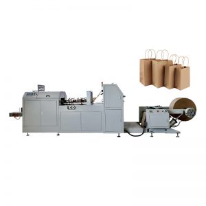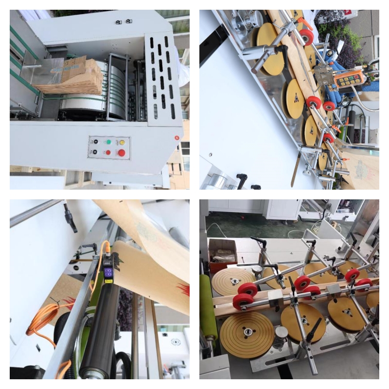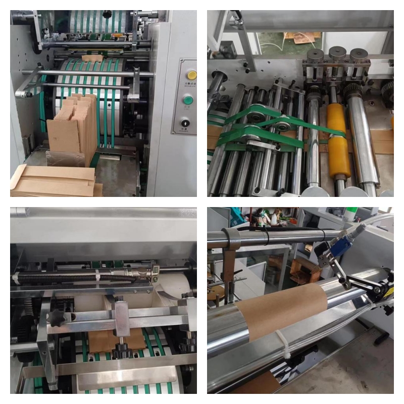 This machine is used for one-time completion of gluing and film application on rolls of original color paper or printing rolls such as kraft paper, glossy paper, medical paper, etc. It can glue on the top, form a tube, cut off, apply glue at the bottom, shape the bag, count and collect the pointed-bottom paper bags. The overall structure of this machine is reasonable, compact, and easy to adjust. It is controlled by a high-speed moving central processor, fully servo-driven, with touch screen display, and servo motor controls the bag-making speed. It is an ideal equipment for producing various types of paper bags, food bags, fast food bags, bread bags, medical bags, dried fruit bags, shopping bags, etc., which are environmentally friendly paper bags.