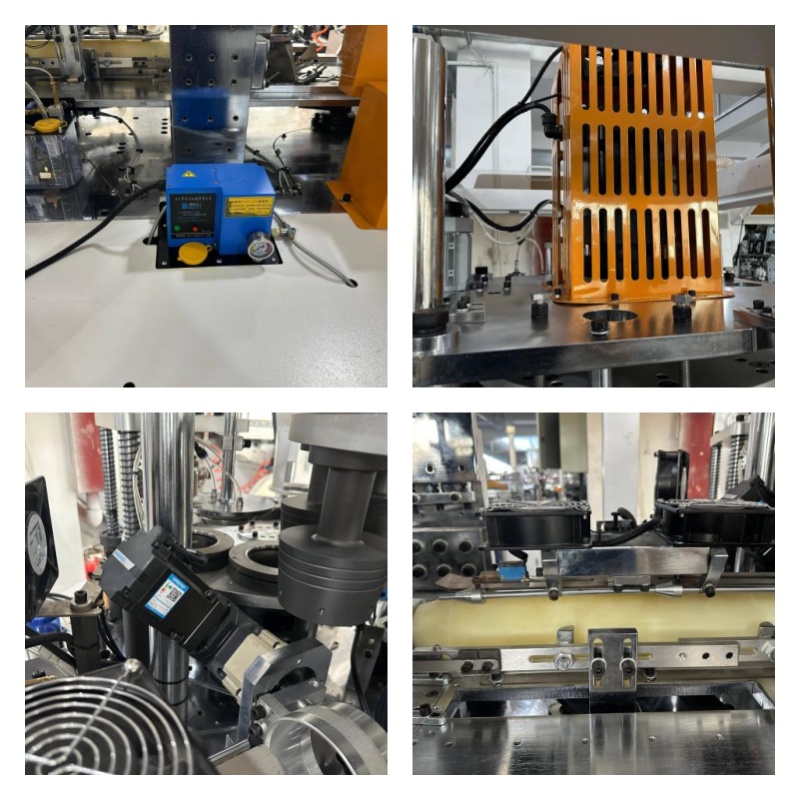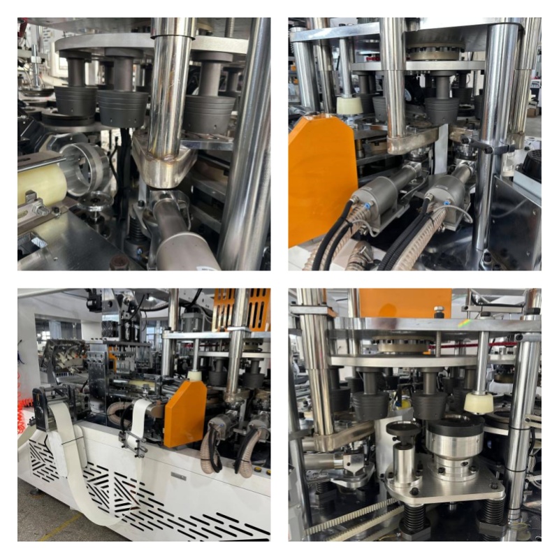 The HF-6000S smart paper bowl machine uses a desktop layout, isolating the transmission parts and molds. The transmission parts are under the table and the molds are on the table, and this layout facilitates cleaning and maintenance. The machine adopts automatic spray lubrication, longitudinal shaft drive structure, barrel cylindrical dividing mechanism and gear transmission, to ensure the stability and quality of the whole machine. For electrical components, use PLC, photoelectric tracking and servo feed. Such machines have a production capacity of up to 130-150 / min and are suitable for producing 12-36oz cold / hot bowls.