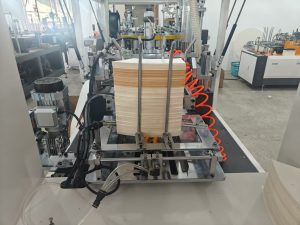 The working principle of our paper cup machine is that a main motor drives the whole machine to work, and realizes the perfect fusion of gear and cam structure.Now the machine uses a single aluminum disk instead of the previous three-disk machine, so that the machine failure rate is greatly reduced, and the training time for the operator is reduced.This machine has 10 stations, 10 stations grinding tools, fold against the flower preheating 5 groups of stations.The machine running speed is increased to 90-120 can be customized to 3-16oz single and double shower film paper cups according to the customer request.Is a fully automatic paper cup molding equipment, through multiple automatic paper, paper return device (ensure accurate positioning), ultrasonic or copper welding, mechanical paper cylinder transfer, oil injection, bottom, folding, preheating, rolling, cup, unloading continuous process, can stable production of different specifications of paper cup, is our company independent research and development after comprehensive technical improvement can improve the stability of the paper cup equipment.