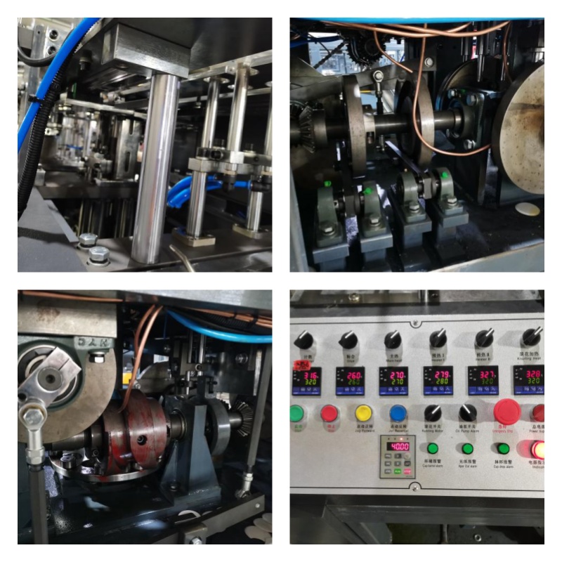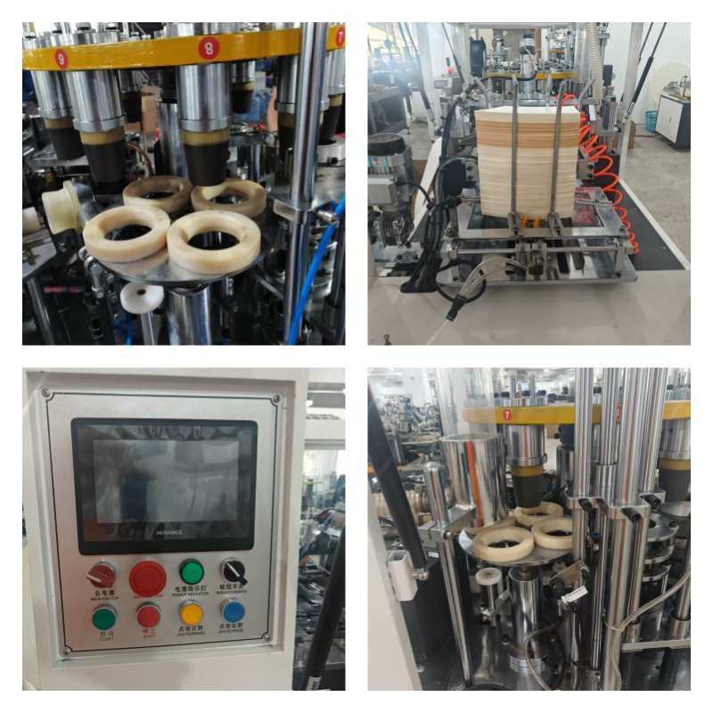 The working principle of our paper cup machine is that a main motor drives the whole machine to work, and realizes the perfect fusion of gear and cam structure.Now the machine uses a single aluminum disk instead of the previous three-disk machine, so that the machine failure rate is greatly reduced, and the training time for the operator is reduced.This machine has 10 stations, 10 stations grinding tools, fold against the flower preheating 5 groups of stations.The machine running speed is increased to 90-120 can be customized to 3-16oz single and double shower film paper cups according to the customer request.Is a fully automatic paper cup molding equipment, through multiple automatic paper, paper return device (ensure accurate positioning), ultrasonic or copper welding, mechanical paper cylinder transfer, oil injection, bottom, folding, preheating, rolling, cup, unloading continuous process, can stable production of different specifications of paper cup, is our company independent research and development after comprehensive technical improvement can improve the stability of the paper cup equipment.