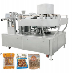 The HF-GD260-08 Vacuum Premade Pouch Packaging Machine integrates bag feeding, vacuum processing and packaging into one, with stable and efficient performance. It is equipped with 8 workstations for automatic bag feeding and 10 workstations for vacuum pumping, ensuring smooth bag delivery and sufficient vacuum effect. The machine runs at a speed of 15–40 bags per minute, suitable for packaging bags with length 160–350mm, width 160–260mm and material thickness up to 105mm. It can adapt to zipper bags, tote bags, M bags and various premade bag types, meeting diversified packaging requirements. With a discharge port height of 1550mm, it is convenient for material collection and production connection. The whole machine features reasonable structure, reliable operation and easy adjustment, widely used in food, chemical, hardware and other industries that require vacuum premade bag packaging, effectively improving packaging quality and production efficiency.